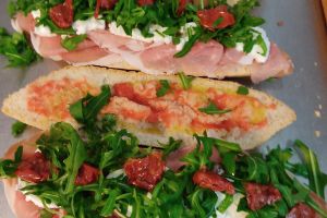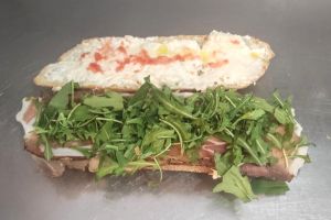 Dando un sabor único a la grande elección de bocadillos servicio en una acogedora terraza, cálida en invierno, fresca en verano.