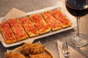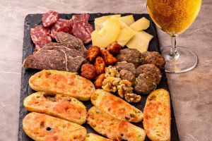 Tapas y raciones, incluyendo típicas tapas menorquinas caseras como calamares, albóndigas, croquetas, embutidos locales y más.