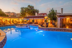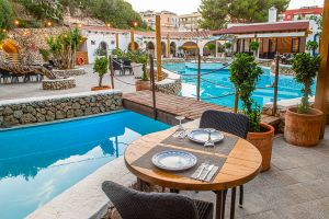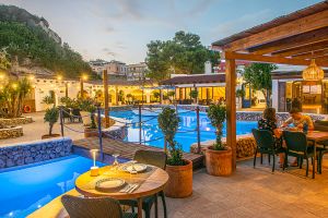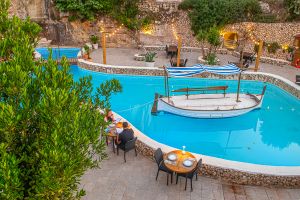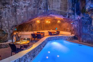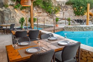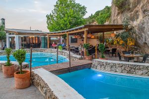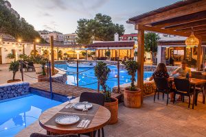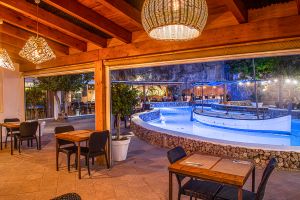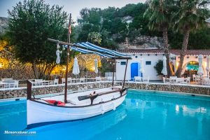 El Restaurante Can Avelino 23 en Menorca es un lugar con encanto, fruto de una magnífica reforma de la que han sabido sacar el máximo partido. En su patio destaca una piscina o lago central con un llaüt menorquín flotando, que aporta un aire auténticamente mediterráneo y muy especial. Las paredes forman recovecos naturales, habilitados como rincones íntimos para tomar una copa, mientras en las rocas se proyectan imágenes que crean un ambiente único en la isla.