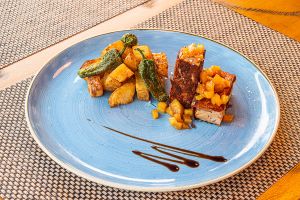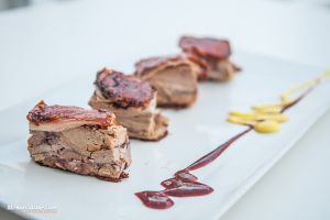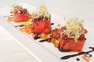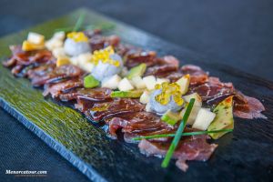 propuesta destacan: canelones de confit de pato con trufa, brandada de bacalao con mermelada de pimientos, cordero deshuesado al vino tinto con cuscús, tataki de atún sobre fideos thai, tiramisú o espuma de crema catalana.