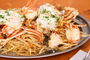 Los ingredientes de los platos son, sobre todo, locales. Llegan a Ulisses directamente del productor, del mercado o de Curniola y Valldemosa Primera, las barcas con las que salen a pescar desde el puerto de Ciutadella. Por eso su carta cambia según lo que ofrece el mar de Menorca. Respetando sus tiempos y sus ciclos.