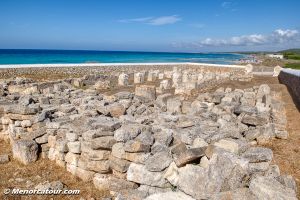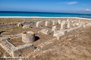 En el extremo este de la playa con el mismo nombre se conserva el trazado de una peculiar basílica de forma rectangular, indicio de la primera cristianización de la Isla. Se trata de la Basílica de Son Bou, uno de los testimonios paleocristianos más antiguos de la isla de Menorca.