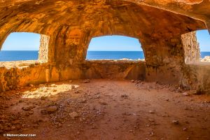 A la derecha del faro se encuentran los restos de un observatorio y de una batería construidos durante la guerra civil.