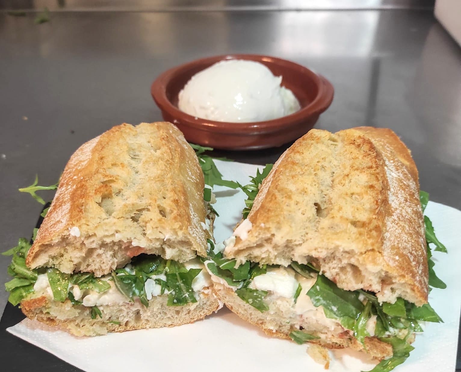 Dando un sabor único a la grande elección de bocadillos servicio en una acogedora terraza, cálida en invierno, fresca en verano.