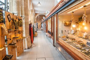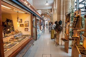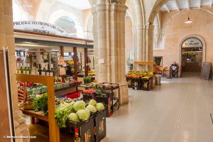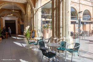 En la planta baja del Claustro se encuentra el mercado de carnes, frutas y verduras, que ya lleva más de un siglo ocupando este recinto, y bajo el patio se ha creado un nuevo espacio comercial comunicado con el aparcamiento subterraneo de la Plaza Miranda.