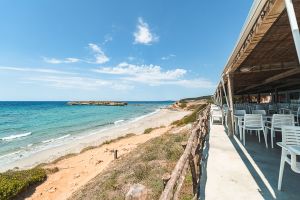 Emblemático chiringuito de Menorca inaugurado en 1950 y situado a pie de la playa Sant Adeodato, en la urbanización de Sant Tomàs. Es Es Bruc Sant Tomàs.