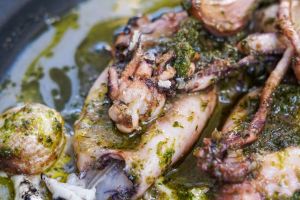 Los ingredientes de los platos son, sobre todo, locales. Llegan a Ulisses directamente del productor, del mercado o de Curniola y Valldemosa Primera, las barcas con las que salen a pescar desde el puerto de Ciutadella. Por eso su carta cambia según lo que ofrece el mar de Menorca. Respetando sus tiempos y sus ciclos.