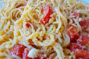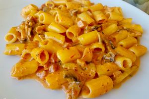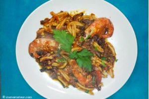 - Pasta strozzapreti con gambas y tomate