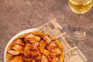 Tapas y raciones, incluyendo típicas tapas menorquinas caseras como calamares, albóndigas, croquetas, embutidos locales y más.