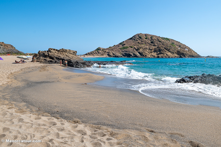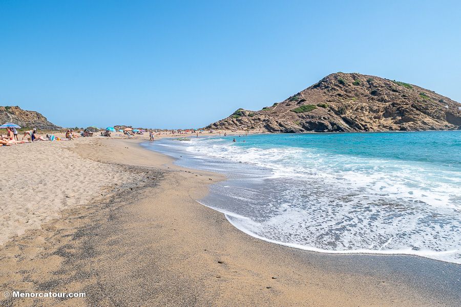El arenal, además, se encuentra flanqueado por Es Pa Gros, un montículo de alrededor de 60 metros de altura desde donde se puede disfrutar de una bella panorámica.
